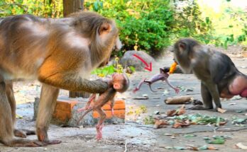 “No Mom, please!” seems to echo in the tiny monkey’s soft cries as Stephanie gently reaches out. With a careful, almost hesitant motion, she takes her baby’s small hand and …