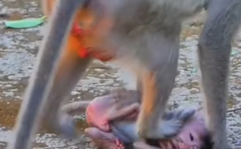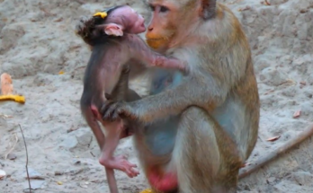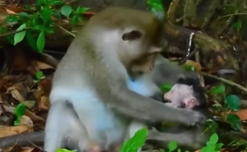 In a quiet forest moment, a tiny baby monkey cries softly, reaching for milk from its mother. But in this unbelievable and emotional scene, the mother monkey refuses to feed …