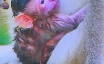 In a quiet corner of the forest, a rare and heartwarming moment unfolds as an elderly mother monkey tenderly welcomes her tiny newborn baby into the world. With gentle hands …
