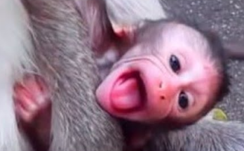 Tiny baby monkey cries loudly, begging mom lovingly for more warm milk today. Read More