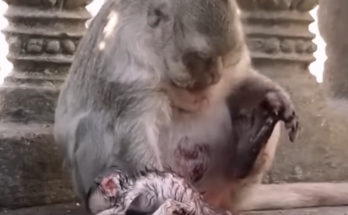 High in the quiet canopy, a mother monkey clings to a sturdy branch as waves of pain surge through her body. Her breaths grow heavier, and her eyes reveal both …