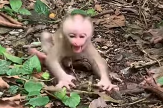 Oh no! The tiny baby monkey cries sadly as his mom monkey leaves him alone on the cold ground. His little hands reach out, hoping she will come back and …