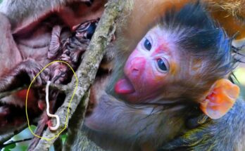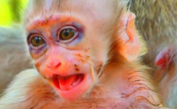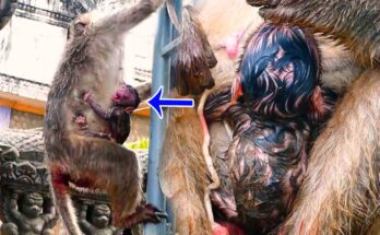 Deep in the wild, a heartbreaking scene unfolds as a fragile newborn monkey struggles through unimaginable pain after suffering a serious injury. Separated from safety and too young to understand …